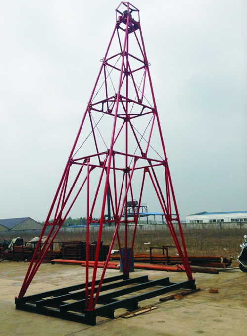 SGX-8型鉆塔型用于配合300米至600米巖忿鉆機(jī)鉆進(jìn)孔深500米以內(nèi),作傾角75°-90°鉆孔升降鉆具直、斜兩用鉆塔。其特點(diǎn)為具有承載能力適中,結(jié)構(gòu)緊湊、合理,拆裝方便、搬運(yùn)成本低等特點(diǎn),適合XY-2、 XY-3型巖芯鉆的配套使用。